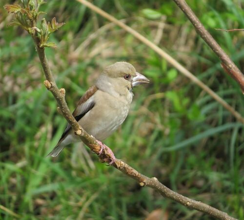 卯の花月の 入りぐちに シメが佇んでいました… そろそろ立つ日も近いでしょうか。 2年前のきょう、出合ったシメです。 桜は先月末に撮影したものです。 旅立ちに花を添えて…