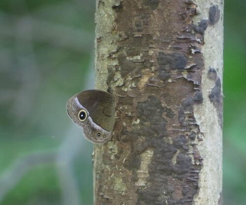 風薫る朝… イカルが 彼方を 見つめて いました 青空の その先には 夏が 見えますか…? (撮影5月6日/紅葉:10日) 1枚目の蝶は、ヒメジャノメです。 nabeさんが教えてくださいました。 幼虫の頭はタヌキさんの顔になっています