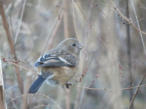 風がふいたら、ふわりと 揺れて、にらめっこをしたら 負けてしまいそうな瞳でした☆ きのう出逢ったベニマシコさんですが 幼鳥さんかな、と思います。 ほんとうに風がふいたので 真ん中の写真のようになりました。 ノートリです。