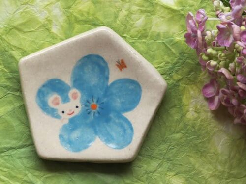 きょうは夏至ですね。 こちらは、ざんざん降りの雨のなか 焼きあがった小皿を 先ほど持ち帰ったものです。 涼やかなお花にねずみさんがかくれんぼしていたら だいだい色の蝶が遊びに来たよ♪ オタフクアジサイさんに飛び入り参加してもらって 撮影しました☆ …