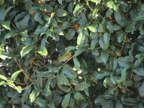 こっそり かくれんぼ、でしょうか♪ 毎年楽しみな、ご近所さんのキンモクセイなのですが この秋は、なぜか花が少なくて心配していました。 この数日、いい香りを漂わせてくれています。 (撮影10月10日)