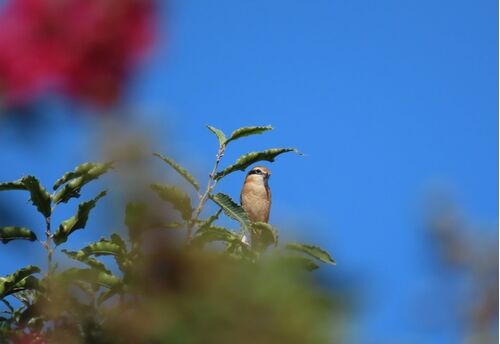 遠くの枝にモズの男の子百日紅の向こうにもモズの男の子青空が嬉しいね★ どっぷり雨の朝です… (10月2日·3日)