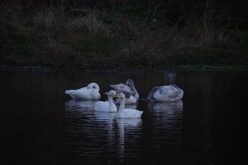 きょう出逢えたコハクチョウさんたち灰色の幼鳥さんも一緒です(^ー^)日暮れ時になってしまったけれど埼玉県内の白鳥飛来地で出逢うことができました🦆 🦆🦆