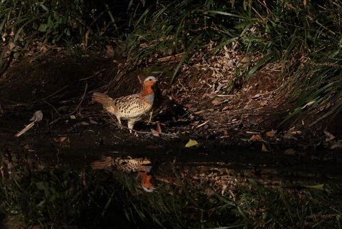 藪の中では 「チョットコイ チョットコイ」と 賑やかなコジュケイさんですが 水辺には そーっと現れて 草むらからもう1羽 出てきたよ♪ それから いつのまにか 4羽になっていました お水を飲んで満足したら 1羽ずつ戻ってゆきます 最後に綺麗な水鏡を 見せてく…